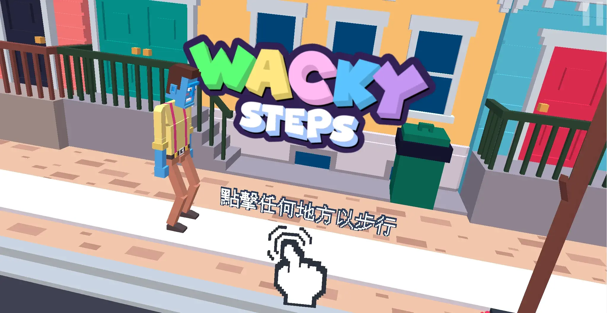 Wacky Steps is a physics-based ragdoll walking game in the endless runner genre. You control every individual step your character takes, avoiding sidewalk cracks, traffic, and other hazards while trying to walk as far as possible.